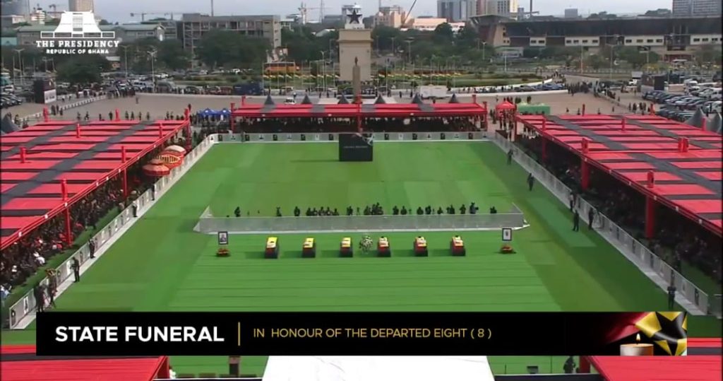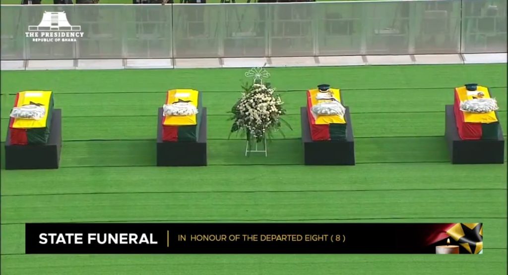 Ghana today bids a final farewell to the eight victims of the August 6 military helicopter crash in Sikaman-Brofroyedru, Adansi Akrofrom District, Ashanti Region.