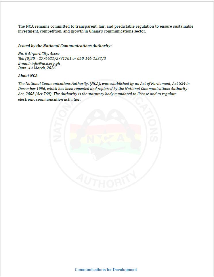 The NCA reaffirmed its commitment to transparent, fair and predictable regulation to ensure sustainable investment, competition and growth in Ghana’s communications sector.