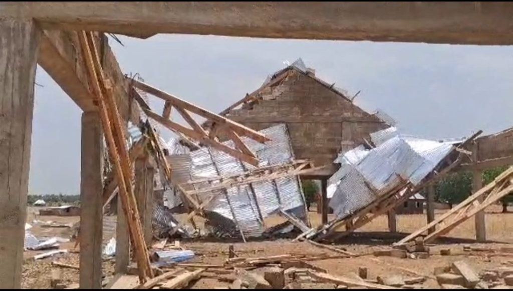 The storm, which struck around 6:30 p.m. on April 24, destroyed approximately 150 houses, two churches, and four basic schools in Koloku and surrounding communities, according to the National Disaster Management Organisation (NADMO).