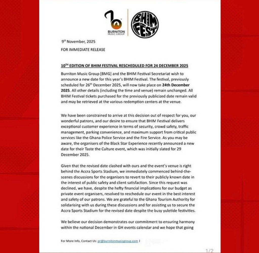 Organizers say the rescheduling aims to ensure a bigger and better experience for fans, with enhanced production, special guest performances, and new surprises in store. “This is not just a concert; it’s a celebration of resilience, creativity, and the global rise of Ghanaian music,” a statement from Stonebwoy’s team said. “Fans should expect an immersive experience that tells the story of BHIM from the very beginning to where we are today.”